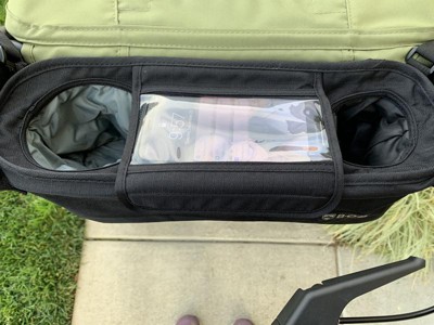[This review was collected as part of a promotion.] I was gifted this deluxe handbag console and what an upgrade from what I had been using. It was very easy to install and fits perfect on my BOB Alterrain Pro stroller. The large cup holders fit my water bottles. The phone pouch with touch screen access makes me feel like my phone is protected yet available. I also appreciate the tire pump so I will never have to run home on a flat tire ever again! Also, the quality is wonderful. This console is well made and I can already tell will hold up well and not fray or fall apart.