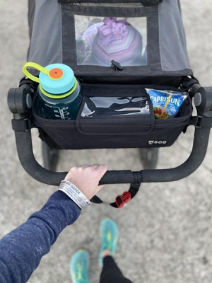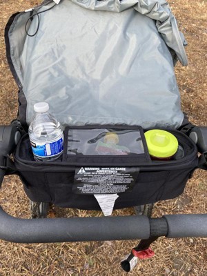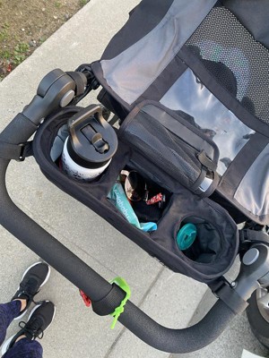 [This review was collected as part of a promotion.] So convenient and so much space to take essentials with you on a walk or run. The drink compartments are large enough to fit my son’s wide 10 oz tumbler. I love that I can fit his snacks, sunglasses, boogie wipes, and anything else he decides to take on a run with him in this console. Definitely a must have!