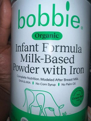 - USDA ORGANIC: Bobbie is always made from non-GMO ingredients and never has corn syrup, palm oil, or maltodextrin.