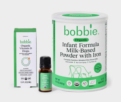 Bobbie Organic Combo Feeding Kit - Organic Infant Powder Formula and Vitamin D Supplement - 14.1oz