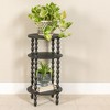 Elevate your home décor with this Bobbin Leg Round Wood Accent Table, featuring a sleek black finish for a modern yet timeless look. Its rounded design and three-tier shelves provide both style and functionality, while the spindle-style legs add a touch of classic charm. Perfect for storing books, plants, or decorative accents, this versatile piece complements any room.