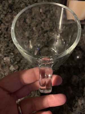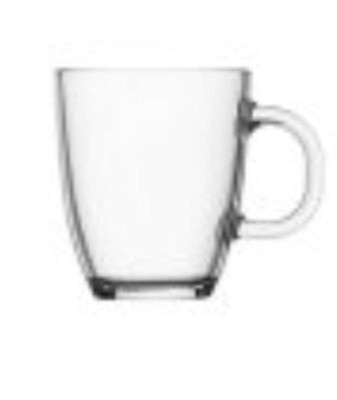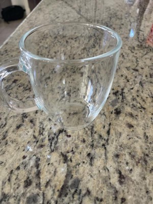 Beautiful clear glassware. I love these new glasses to put my coffee into in the morning. It us very durable and thick glass, not thin at all. Holds just the righr amount of any drink. The handle is of good size to fit my hand comfortably.