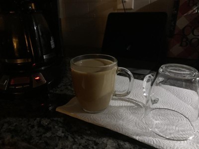 I had never seen clear mugs before. These have a beautiful aesthetic. Thick tempered glass. It’s cool seeing my coffee creamer mix and swirl from the sides. They feel very durable and have some weight to them. My husband and I mainly use it for coffee but I have put some iced tea in them a couple times as well. Good for hot or cold drinks. I normally put my coffee cups in the cabinet but I’ve found myself leaving these out on the counter by the coffee pot because of how nice they look. Well done. We love them!
