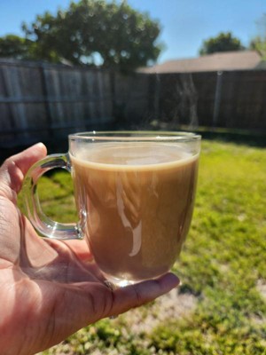 Perfect size mug for your perfect cup of coffee. I was worried that it might be too hot because it's a single wall glass but that isn't the case at all. It washes well in the dishwasher and doesn't appear to be super fragile. I really like these mugs.