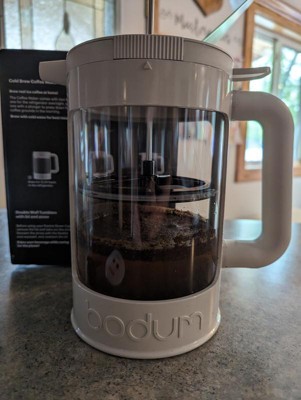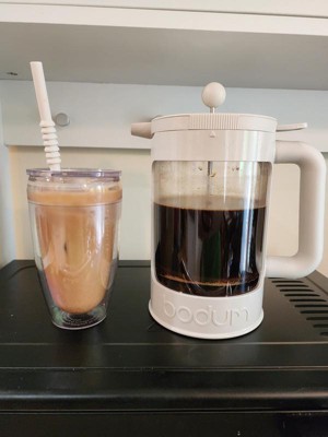 A: You can use this coffee maker to brew hot coffee as well. Pour hot water into the carafe over coarsely ground coffee. Stir and then place the plunger lid on top. Let sit to brew for four minutes and then slowly lower the plunger using only the weight of your hand. Pour and enjoy!