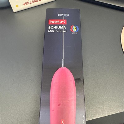 Bodum Schiuma Milk Frother Pink: Handheld Frother Wand for Coffee, Battery-Powered Mixer, Stainless Steel & Plastic