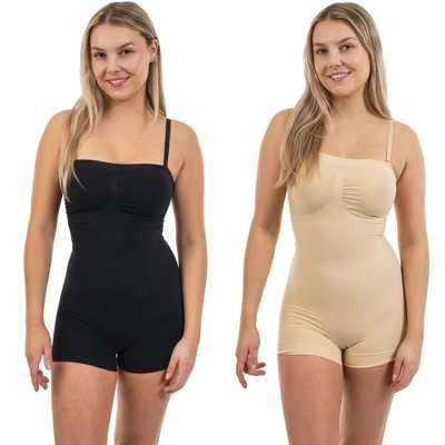 2-Pack Bodysuit Boyshort Shaper for Women – Seamless Nylon Shapewear in Black & Nude – Body Beautiful Shapewear