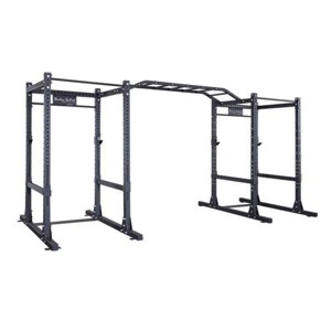 Upgrade your training facility with the Body-Solid Double SPR1000 Commercial Power Rack — a premium, heavy-duty solution designed for serious strength training. Built with a 3” x 3” 11-gauge steel mainframe and a massive 1000 lb weight capacity, this power rack ensures unmatched durability and stability during the most intense workouts. Its 1” hole spacing allows precise spotter bar adjustments for maximum safety and performance. The included monkey bar attachment connects both racks, creating an ideal setup for group training or multi-user use. With multiple expansion options, customizable attachments, and full commercial warranty coverage, this rack is perfect for gyms, training centers, and advanced home setups. Dimensions with Monkey Bars: 94" H x 197" W x 81" L.