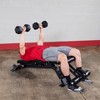 The Body-Solid Flat/Incline/Decline Bench (SFID425) delivers unmatched versatility, strength, and comfort for any training environment. Built with thick, durable padding and a fully commercial-grade steel frame, this bench offers multiple independent back and seat adjustments for customized workouts. The back pad adjusts from a -18° decline to an 80° incline, while the seat pad offers three settings for perfect support. A wide seat and leg hold-down system allow for secure decline movements like presses and sit-ups. Designed for use with dumbbells, smith machines, squat racks, or power racks, the SFID425 combines functionality, comfort, and commercial-level durability.
