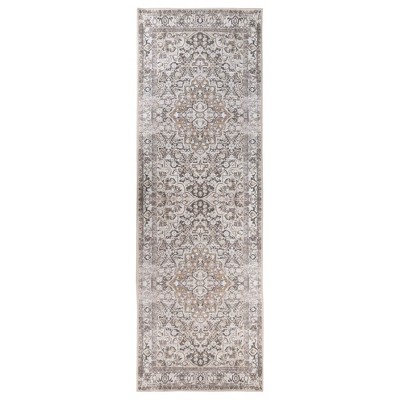 I really like this rug. It's charcoal color is really nice and goes great in my hallway. The design and patterns are beautiful. It is soft and comfortable to walk on. It's also easy to clean. Very sturdy backing.