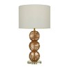 - A lamp for accent table accentuating a drum shade and stacked ball-shaped wooden body