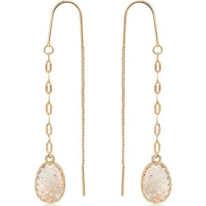 - STYLISH DESIGN - These minimalist threaded chain drop earrings feature sparkly oval-shaped simulated druzy in a crown bezel setting. They are the perfect pair of long pull-through earrings for everyday or wedding bride, bridal, or bridesmaid look. The boho dangling glitter pendants make a statement with a unique textured appearance.
