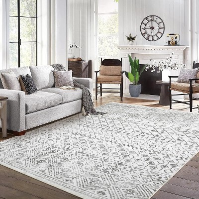 Boho Geometric Washable Rug with Rubber Backing, Non-Slip Low Pile Runner Carpet, Farmhouse Style for Kitchen, Laundry, Hallway, and Entryway.