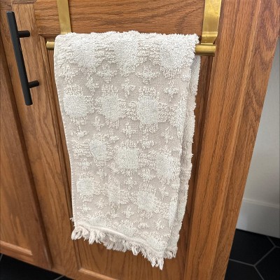 This is a beautiful neutral hand towel for your bathroom. I wish I bought more! My only complaint is that is slightly lost some of its plushness and shrunk a little in the wash.