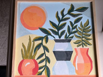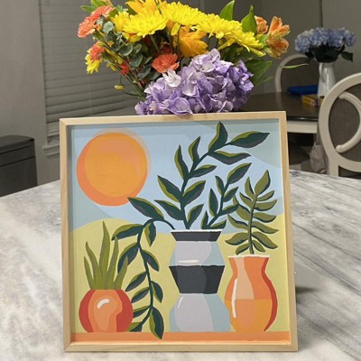 This Boho Plant Garden Paint-By-Number Potted Plants Craft Kit from Mondo Llama™ is a fun creative outlet that leaves you with an artful finished product. This kit includes one canvas with wood frame plus 16 acrylic paint pots and two paintbrushes — everything needed to make one colorful framed painting of a potted plants.