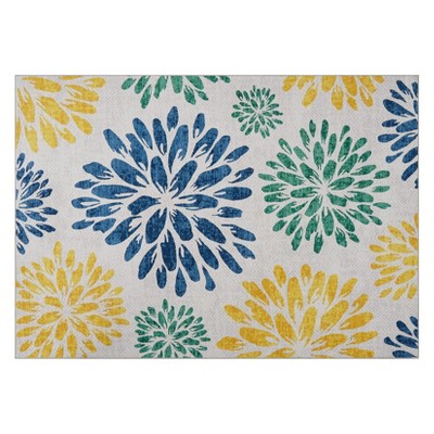 Boho Rugs - Washable Non Slip Low Pile Floral Small Carpet for Bedroom