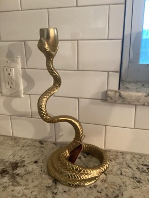 Decorative Snake Taper Candle Holder - Unique Home Decor Accent for Entryway, Shelf Styling, or Office Decoratoin - 13", Gold