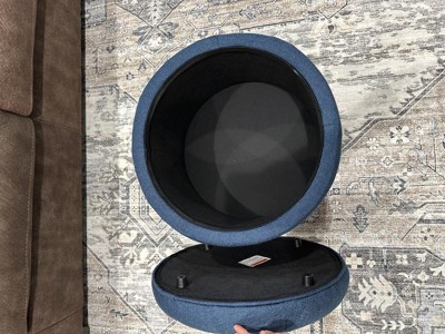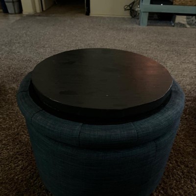 I ordered the Indigo ottoman after looking online for weeks. The color is very pretty and the fabric is really nice. Assembly was as easy as putting the legs on. Less than 5 minutes. The tufted top is firm and sturdy enough to sit in which is a plus for added seating. Storage is good too. Overall I am very, very happy with this ottoman, and it arrived i. 2 days! The blue adds a nice pop of color to my grey and blue chair.