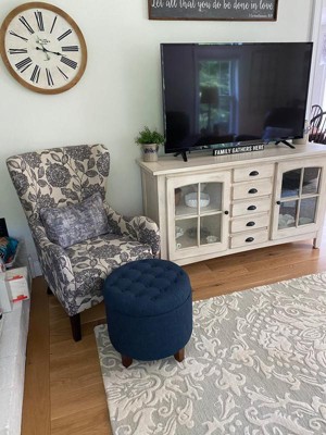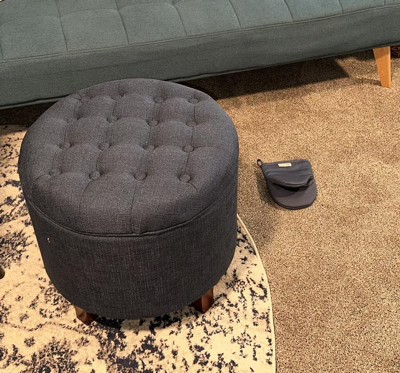 This ottoman is a stylish and functional addition to any space, offering ample storage and a sturdy design. Guests appreciate its beautiful color, which is more of a rich blue than purple, and its easy assembly. The button detail and spacious interior make it perfect for storing blankets or using as extra seating. While some guests found the legs challenging to align, many have successfully modified them to suit their needs, enhancing their overall satisfaction.