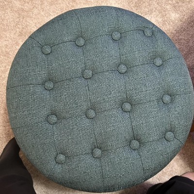 I use this ottoman without the legs with no problem. It is greener than the photo but looks nice with a gray sofa. Nice for blanket storage.
