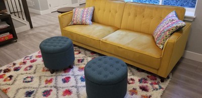 Boho Tufted Storage Ottoman Purple - HomePop: Round, Footstool, Wood Legs, 250lb Capacity