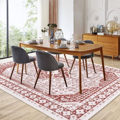 Boho Vintage Medallion Area Rug - 8x10 Washable Floral Print Rug, Easy-Cleaning, Low-Pile, Non-Shedding, Non-Slip Soft Accent Carpet