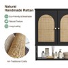 - Elegant & Exquisite: Our wall-mounted storage cabinet features an arched, handmade rattan door and an open shelf, suspended above the sink countertop. This exquisite bathroom wall cabinet showcases the charm of handmade rattan craftsmanship, wave wood grain and plant decoration complement each other. The Bohemian style is full of unique cultural charm and natural beauty