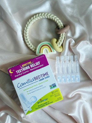 With Camilia Bedtime, soothing nighttime teething discomfort is as simple as twist and squeeze. This worry-free, plant-based homeopathic medicine helps relieve restlessness, painful gums, irritability, and minor digestive upsets associated with teething at night.* Convenient, hygienic liquid doses make it easy to comfort your baby or toddler at bedtime without mess or fuss — no rubbing on gums required. Camilia Bedtime is made with chamomile and other plant-based active ingredients to help calm restless nights. Its non-GMO formula is benzocaine-free with no preservatives, dyes, flavors, or sugar. Unlike teething gels and general pain relievers, it won’t numb your baby’s gag reflex or interfere with nursing. Pre-measured and portable, these tasteless liquid doses fit easily into any nighttime routine, whether at home or away. Recommended for babies and toddlers 1 month and older, Camilia Bedtime is available over the counter in boxes of 30 liquid doses. Boiron’s line of liquid dose baby medicines also includes original Camilia Teething Relief, Camilia Tummy, and ColdCalm® Baby.