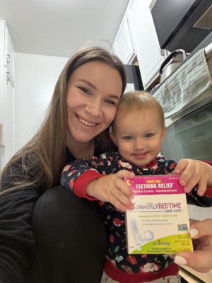 [This review was collected as part of a promotion.] These liquid bedtime teething doses are perfect for my teething toddler. They seem to work so well for her and help to subside the discomfort. We have been using them daily to help with 3 teeth she has coming in.