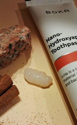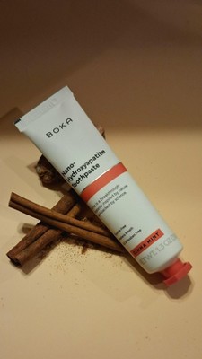 This Toothpaste that gives you a bold blast of cinnamon flavor. Boka Cinnamint Toothpaste (1.3 oz) This Fluoride-free toothpaste cleans teeth, freshen breath and reduces plaque. I would say the taste is not bad and I do like that it's natural. It gives a spicy feeling from the cinnamon, combined with a clean freshness. The texture is smooth, making brushing comfortable and enjoyable.