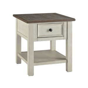 Signature Design by Ashley Bolanburg Rectangular End Table Brown/White: Fixed Shelf, Wood Legs, Storage Drawer