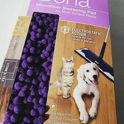 The Bona® Microfiber Sweeping Pad for Multi-Surface Floors works through Electrostatic Action and specially designed microfiber “fingers” that pick-up pet hair, fur, dander and allergens. The soft microfiber won't scratch or damage your floor, and is safe for use on hardwood or hard-surface floors like stone, tile, laminate and LVT. Bona's Microfiber Sweeping Pads are machine washable up to 500 times. Specifically designed for use with the Bona Family of Mops.