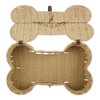 Bone Dry's Bone Shape Storage Bin is designed with a strong weave and faux leather carry handle. This medium size basket measures 21x13x8-inches offering storage for a variety of items, supporting up to approximately 5 lbs. (2 kg). Crafted from 100% Polypropylene, it ensures durability and long-lasting use, easily maintained by wiping with a damp cloth. The unique bone shape design adds charm to any space making it a great decor piece for your home. Ideal for pet-lovers, this basket serves as a perfect organizational solution, holding all your pet accessories - leashes, collars, toys, blankets, grooming supplies, and so much more. Don't miss out on this adorable and functional storage solution! Embrace the convenience and fun of our Bone Shape storage bin, bringing tidiness and joy to your living spaces.