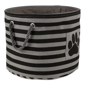 Bone Dry Polyester Pet Bin Stripe With Paw Patch Black Round Small 9X12X12