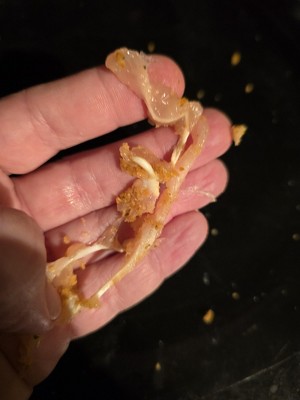 What happened, here? Chicken, since covid sucks. it seems minced and smashed back together and formed into familiar shapes. Not sure what happened here, though…