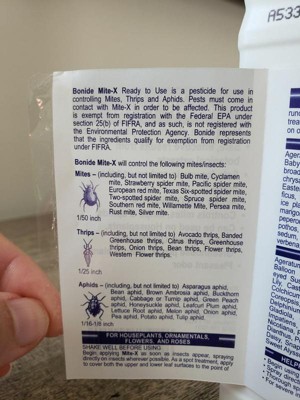 [This review was collected as part of a promotion.] Received free from Influenster and bonide mite x in exchange for my honest review. Just brought 2 plants in for the winter and sprayed this on them. So far so good I haven’t see any mites or bugs but last year without it there were. Didn’t spray too much because wasn’t sure how it would impact the plant but a little goes a long way. Would recommend