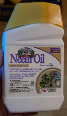 [This review was collected as part of a promotion.] I wish we received the neem oil concentrate earlier in the season as you need to treat 7 days or more apart for mildew and other diseases. Our fruit trees could use the help. As we were only able to do a few applications before it became too cold and then snowed, where we didn't want to risk damage, I can't rave about the oil treatment, but I can say it seemed to be helping with vitality. For bugs, you treat with a higher concentration; however, our bugs were already dying due to the weather. Would have liked to use it on our grape vines for that. This is an all-purpose insecticide, fungicide, and miticide developed using neem seed. Use it for roses, flowers, vegetables, fruits, herbs, indoor houseplants, trees, and shrubs. I would love to try it with a summer garden as well. Make sure you use at least 24 hours ahead of rain. Application was easy enough with a hand sprayer. I am critical of this formula for being harmful to bees. I'd knock off a star for that regardless. I suggest spraying closer to dusk to avoid pollinators.