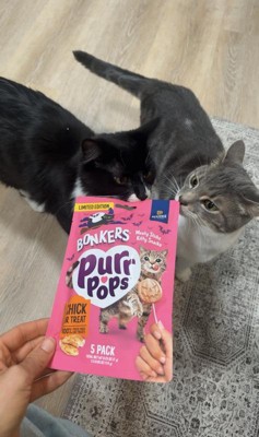 I tried these both of my cats and they love them! They love them so much we call them poppies in our house and my cats come running! I buy all 3 flavors but I just wish you had a wider variety like freeze dried turkey, duck, rabbit, lamb, beef, chicken or turkey and cheese, mix flavors together. Please make more varieties of bonker purr pops!