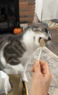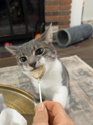 Guests are thrilled with these cat treats, noting that their cats go wild for the various flavors, especially the salmon and chicken options. Many appreciate the freeze-dried texture, which makes them easy to chew and digest. The unique sucker shape adds fun to treat time, and the individually wrapped portions are convenient for travel. Overall, these treats have become a favorite among both cats and their owners, making them a must-try for any feline family.
