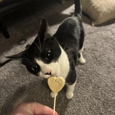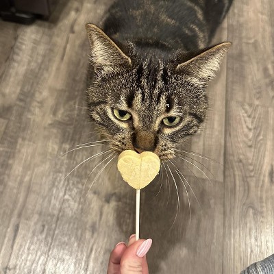 Love the cute pop snack, and so do my kitties. 100% protein is awesome and kitties think so too!