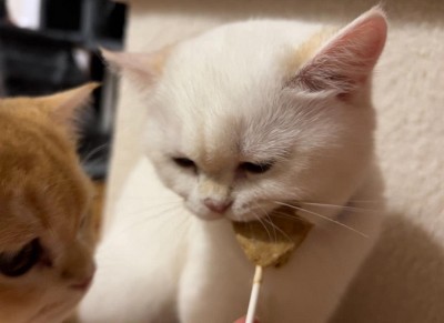 It’s okay, they eat it but it almost feels like they see it as an inconvenience… I have to wave it around in their faces to get them to consider it lol. At first my kittens didn’t seem to really want these, they couldn’t figure out how to eat it. I broke off pieces and gave it to them, then they tried it, and then they started showing some interest in it. They lick a little but mostly chomp on it. One of my kittens seems to like it more than the other (although she didn’t really eat much of her kibble for dinner before I got these out), the latter flat out refused it and walked away to take a nap the second time I tried giving her some. And she’s greedy. You can do anything to her (even a bath) and all will be well and she’ll cuddle up to you once you give her a churu or other treat, and she purrs constantly whenever she sees you’re about to give her something. So refusing this… idk. Not sure if it’s easy to digest, but they did gag a little. Might have been the fluffy-crunchy freeze dried texture, which they haven’t had before (and might be why they’re lukewarm about this one). It does get pretty messy so having a plate (I just used a paper towel) helps. All in all- based on my kittens’ responses this ranks below… almost every other treat they’ve had (greenies, blue buffalo soft treats, wholehearted soft treats, temptations kitten treats, wellness kittles, churu/catit lickable treats, and they’ll run after even nutrical and kibble…)… they ate enough of it, but honestly I probably should’ve just stuck to their usual treats. The whole concept is for treats to be something your cat really likes… if it’s below kibble, then that’s not great lol. Now if someone makes those ice lollipop cat treats that cat cafes in Japan have, that would be great (maybe I’ll just do it myself if I can find some molds)… but in terms of lollipop treats, idk guys idk😭