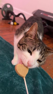 These cat treats have quickly become a favorite among feline friends, with many guests noting their cats' excitement and eagerness to enjoy them. The unique lollipop design adds an interactive element to treat time, making it a fun bonding experience. While the flavors, particularly tuna and salmon, are highly praised for their quality and appeal, some guests expressed concerns about the stick design, suggesting bite-sized options would be safer and less messy. Overall, these treats are a delightful addition to any cat's snack time.