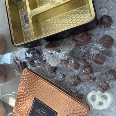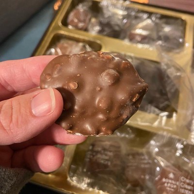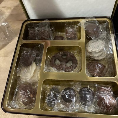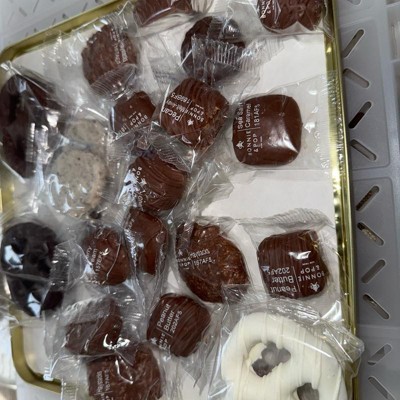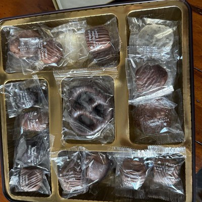- Overflowing With Holiday Favorites: Indulge in Peppermint Patties, Milk PB Squares, English Toffee, Almond Clusters, Pretzel Clouds, Pecan Snappers, Sea Salt Caramels, Pecan Meltaway, Milk Cashew Clusters, decadent drizzled chocolate pretzels and more; each treat is individually wrapped for freshness and delight.