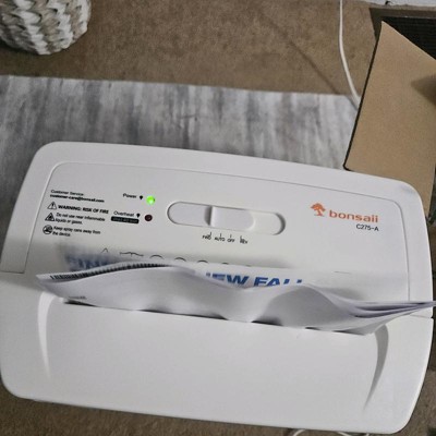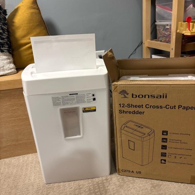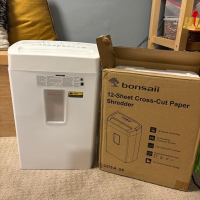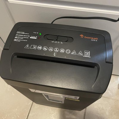 [This review was collected as part of a promotion.] This Bonsai shredder understood the assignment and did it well. It comes securely packed in the box, ready to use after simply placing the shredder piece on top of the basket. It's a cross shredder with 12 sheet capacity, with a 5.55 gallon basket for the waste, and over heat protection on the motor. There's a convenient handle on top to make lifting the top unit easier when emptying. It has forward, reverse, and auto settings. The papers slid in with ease and shredded without issue. I shredded probably 50 pieces of paper total, and the basket is only 1/4 full. This will come in handy for my home office use. I received an incentive to write this review.