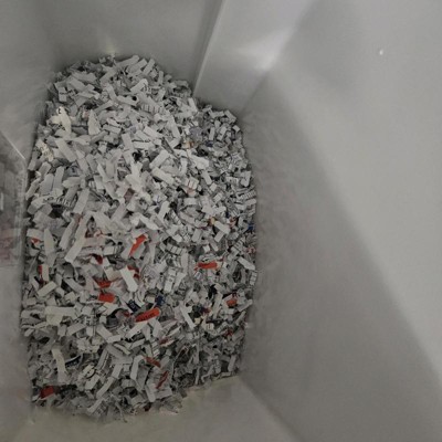 [This review was collected as part of a promotion.] The paper shredder that my husband and I have is at least 20 years old, so we thought it was a good time to get a new one. We are pleased with our decision. The bin that comes with this shredder is much larger than our old bin, which allows us to shred more in between the times we have to empty it. I am please with how the paper goes through the feeder as well as the quantity of paper I can send through the shredder at one time. I received an incentive to write this review.