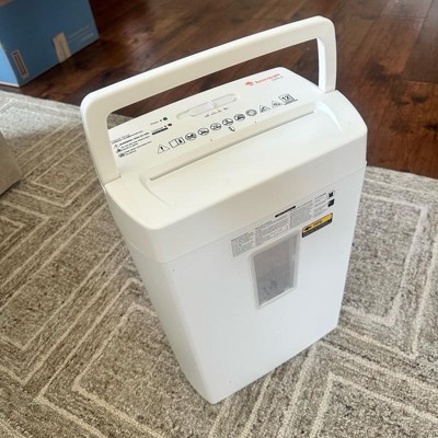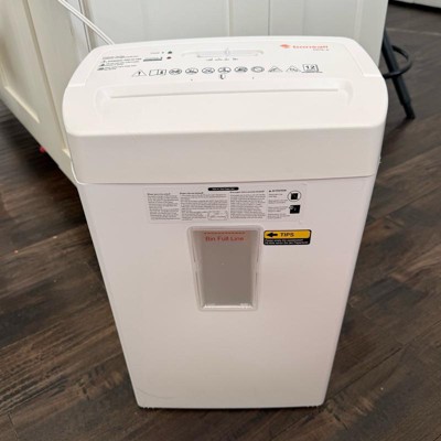 [This review was collected as part of a promotion.] I’m writing this review in comparison to my previous shredder, which was only a 6-page shredder with a smaller capacity. The things that I love about this new shredder are that it can handle up to 12 sheets at a time, it has a window pane in the front so you can easily see how full it is. There is a handle on top that makes it easy to lift off to empty the bin (the top part is heavy!). I also liked that this came in the color white which matches my furniture. I received an incentive to write this review.