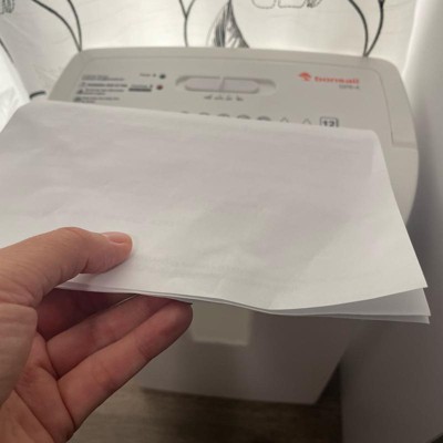 [This review was collected as part of a promotion.] This shredder is great! I was really surprised with how big the bin is. It holds a ton of shredded paper. I love all the way it's shreds it into really small little pieces. I think this shredder is pretty quiet compared to normal shredders. It does say that it can shred up to 12 pages and it does without getting jammed. I've done envelopes and thick paper and it shreds it really well. I received an incentive to write this review.