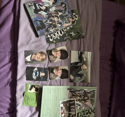 A: This album includes the one member job application, photo cards, photobook, lyric book, one photo of one member and one member id. (plus target exclusive)