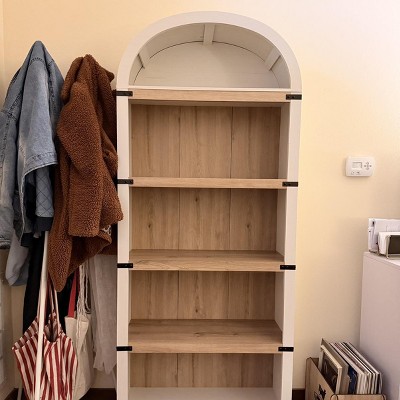 Bookcase 5 Shelf Arched Bookshelf 71.65in Tall Bookcase Farmhouse Display Storage Rack Wooden Bookshelves for Home Office, Living Room