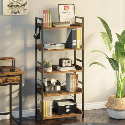 Bookshelf, 6-layer bookcase, industrial style corner storage shelf, freestanding, suitable for bedroom, home office, kitchen, living room